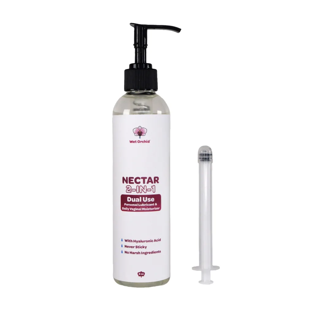 Crafted—not churned out—with plant-based hyaluronic acid and hydroxyethylcellulose, Nectar is a 2-in-1 personal lubricant and vaginal moisturizer designed to truly hydrate and soothe without the sting.
